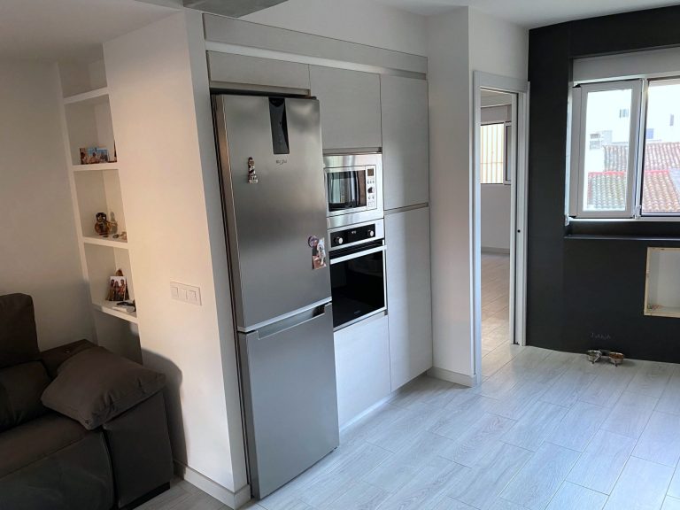 Nuestra clienta buscaba un hogar más cómodo y práctico, con un espacio principal amplio que uniera el salón-comedor con la cocina, además de un baño funcional y un mayor nivel de confort.